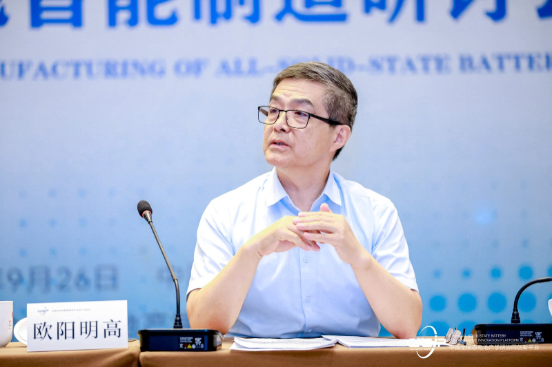 9月26日,由中国全固态电池产学研协同创新平台主办的“全固态电池智能制造研讨会”在北京清华大学召开。来自电池、整车、工艺装备企业以及高校研究机构的百余位专业人士出席研讨会,围绕全固态电池的全链条制造关键问题开展深入交流与探讨,中国全固态电池产学研协同创新平台理事长欧阳明高作总结发言。