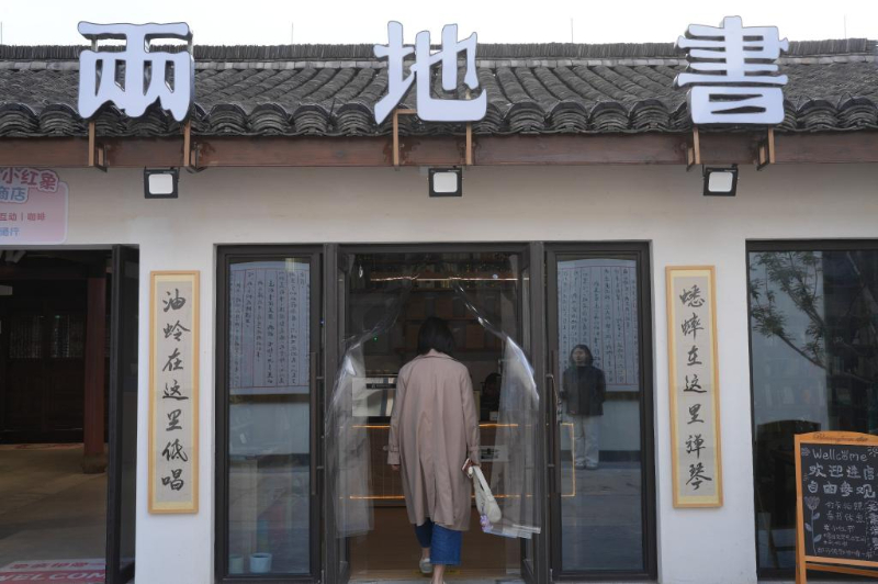 10月23日,在新建成的鲁迅故里二期,游客走进一家书店。