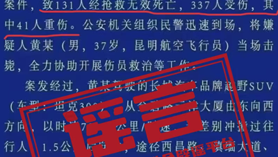 近日,有網民散布虛假的“警情通報”,造謠傳播云南昆明交通事故“致131人死亡,337人受傷”等不實信息,公安機關核查后,依法對造謠者進行了刑事拘留?!八{底白字”的“警情通報”是公安機關權威發布的重要渠道。不法分子竟敢冒用官方標識,將“2死9傷”惡意篡改成“131人死亡、337人受傷”,并編造聳人聽聞的細節,真是膽大包天!