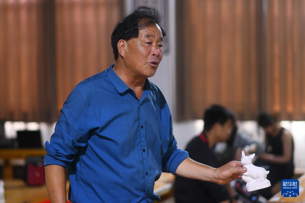 6月6日,省级美术工艺大师张二孬在南石山村的唐三彩文化研学所为学生讲解施釉注意事项。