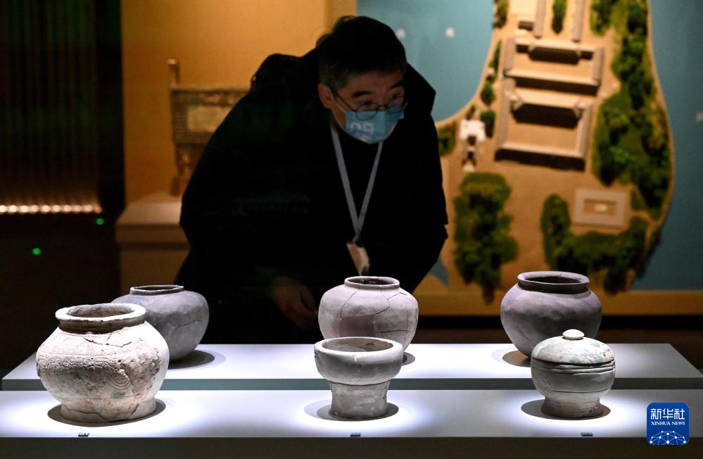 2月26日,参观者在河南安阳殷墟博物馆新馆内观看展品。