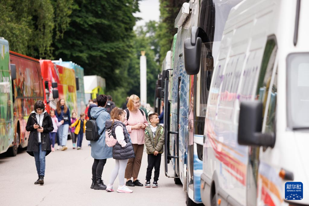 5月16日,在斯洛文尼亚卢布尔雅那,参观者在移动图书馆大巴外排队等待。