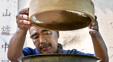 7月12日,张掖市肃南县非物质文化遗产保护传承中心演员表演国家级非遗代表性项目裕固族婚俗。