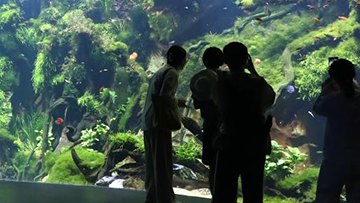 9月12日,观众从“衣”灯组旁经过。