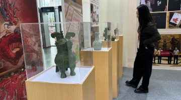 11月4日,外宾在河南博物院选购文创产品。