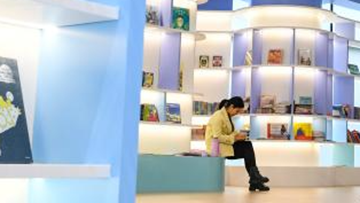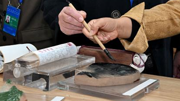 11月13日,在北京市第四中学顺义分校活动现场,来自顺义区木林中心小学校的学生展示书法。