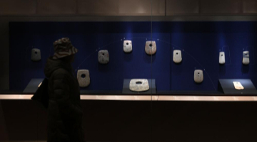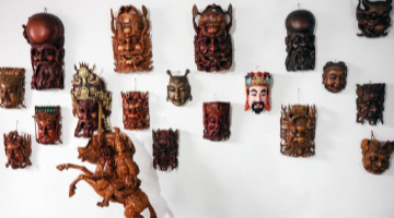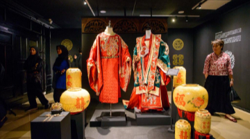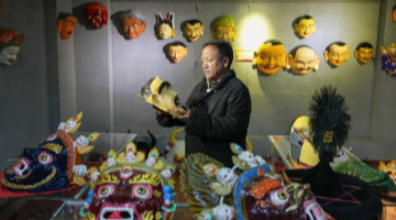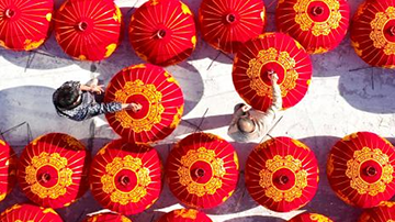 12月16日,在河北省石家庄市藁城区梅花镇屯头村一家宫灯生产厂,工人在晾晒宫灯。