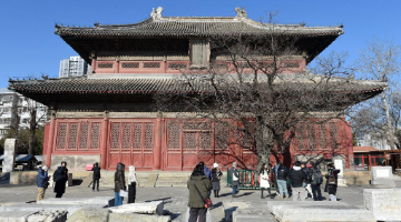 12月16日,在河北省石家庄市藁城区屯头村一家宫灯厂,宫灯艺人在制作大型宫灯。