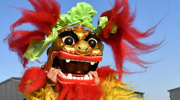 西安大唐芙蓉园内上演的舞台剧《鼓》(2024年1月24日摄)。