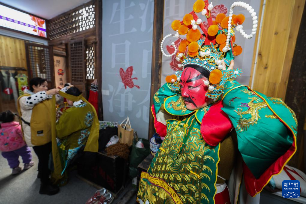 12月25日,郑店村婺剧坐唱班的演员为演出做准备。