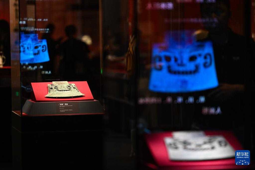 这是5月18日拍摄的“中华文明起源系列展:看·见殷商”展览中的两块“亚醜”铜钺。它们分别藏于山东博物馆(后)和中国国家博物馆。