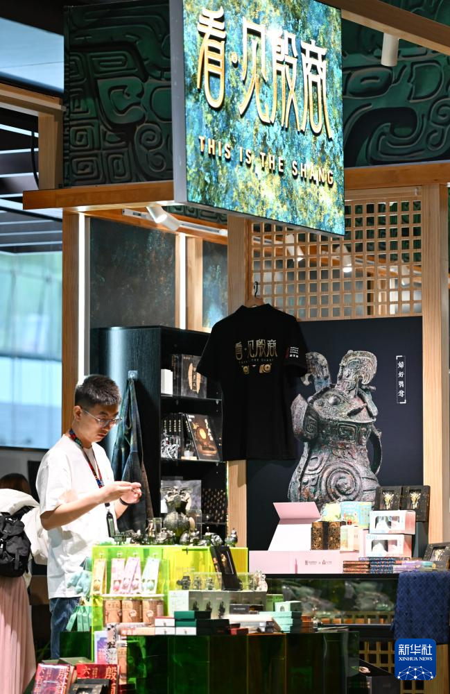 这是5月18日拍摄的“中华文明起源系列展:看·见殷商”展览文创商店。