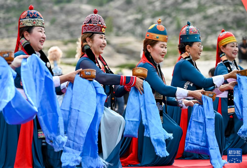 5月24日,在新疆阿勒泰市汗德尕特蒙古族乡,演员在活动现场唱歌。