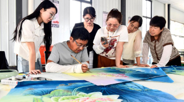 6月8日,游客在重庆市渝中区山城巷体验采耳服务。