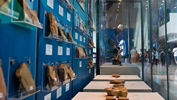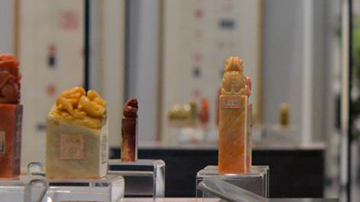 6月21日,观众在北京市海淀区三山五园文化艺术中心参观薪传国粹——“万印楼”新藏当代国际篆刻精品展。