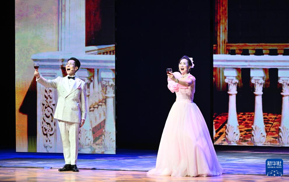 9月13日,演员在天津大礼堂表演话剧《茶花女》。