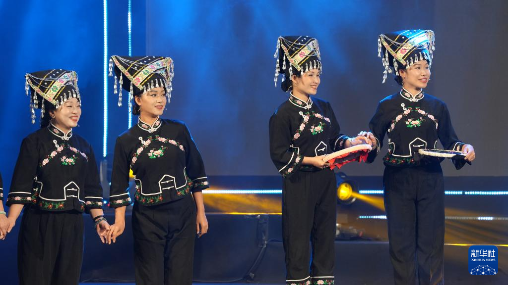 9月25日,在越南河内越南国家歌舞剧院,来自中国云南的演员在2025年中越中秋文艺晚会上合唱歌曲。