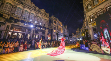 10月8日,在福建省厦门市思明区一家影城,观影市民从电影海报前走过。