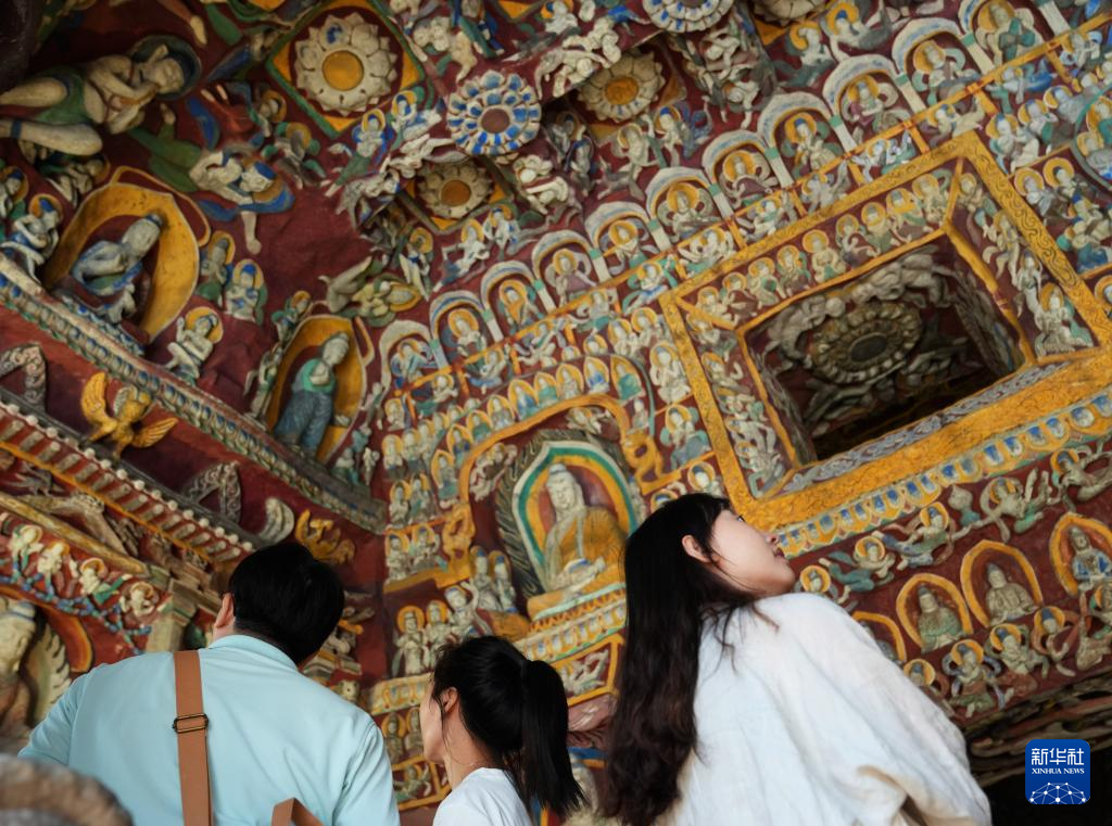 10月9日,“云海相望——云冈石窟艺术特展”在位于上海市虹口区的趣看美术馆举行开幕式。展览采用“双展区”布展模式,汇聚云冈文物、3D复原石窟、当代艺术作品,还包含VR交互体验和原创数字艺术展演等。展览将于10月10日起向公众开放,并展至2026年3月26日。