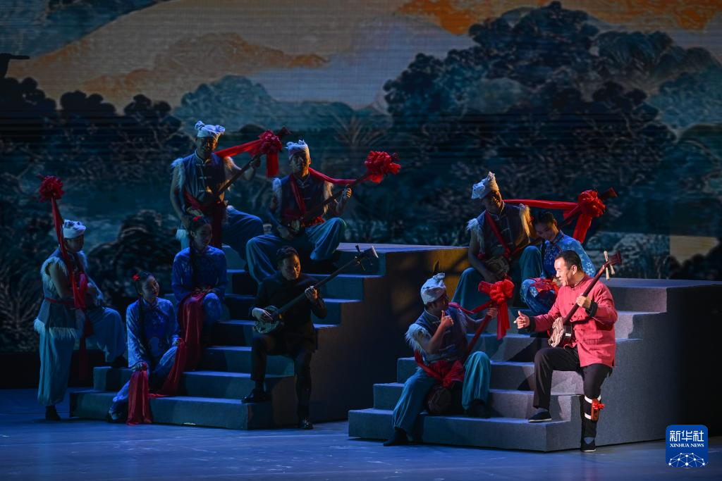 11月4日,在重庆群星剧院,演员演唱歌曲《山歌好比春江水》。
