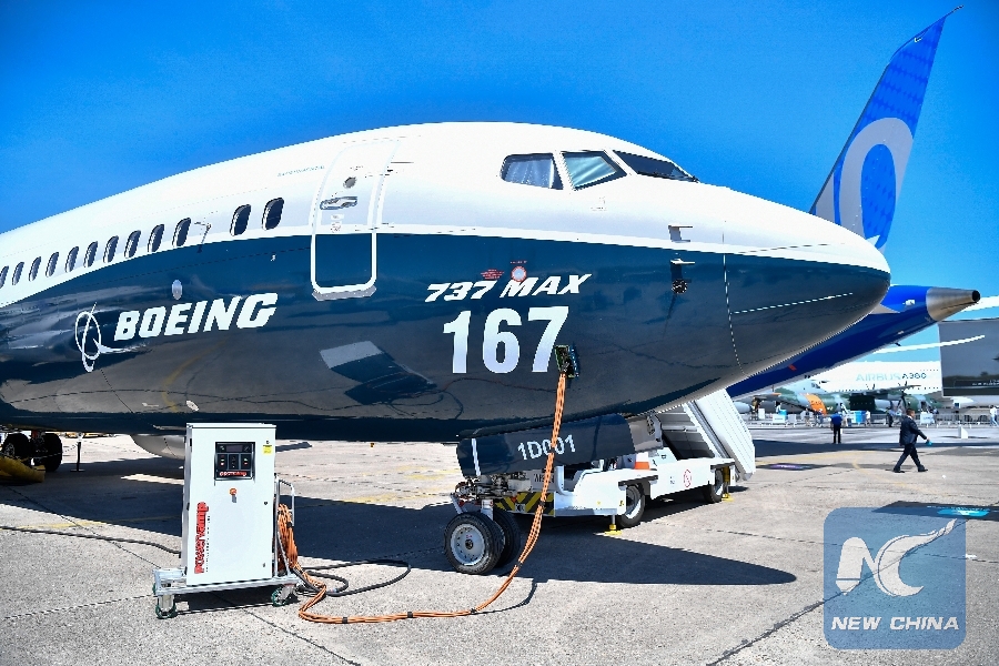 File photo taken on June 19, 2017 shows a Boeing 737 MAX 9 at the 52nd International Paris Air and Space Show in Bourget, France. (Xinhua/Chen Yichen)