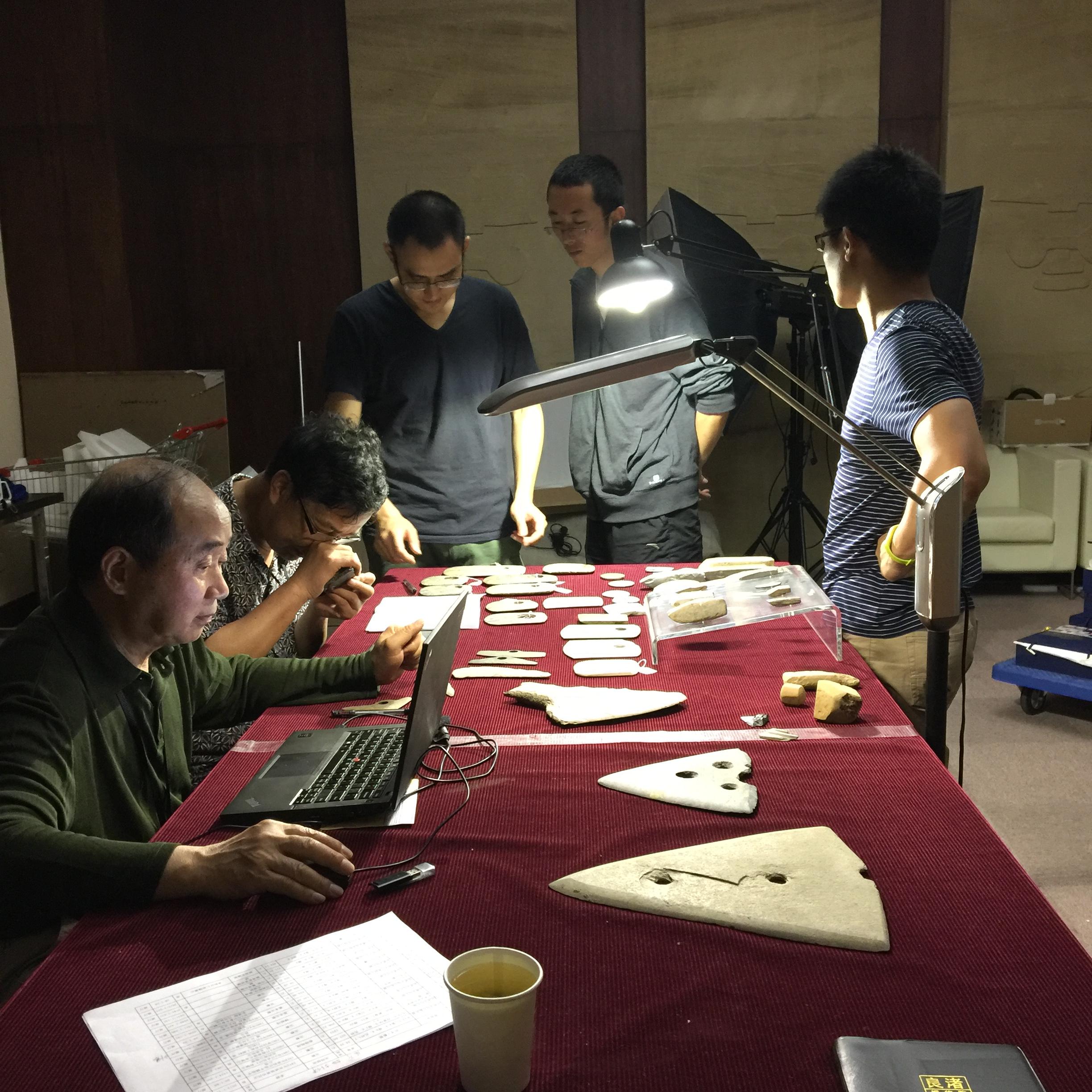 Archaeologists work on stones retrieved from the Liangzhu relic site in Hangzhou. (Xinhua)