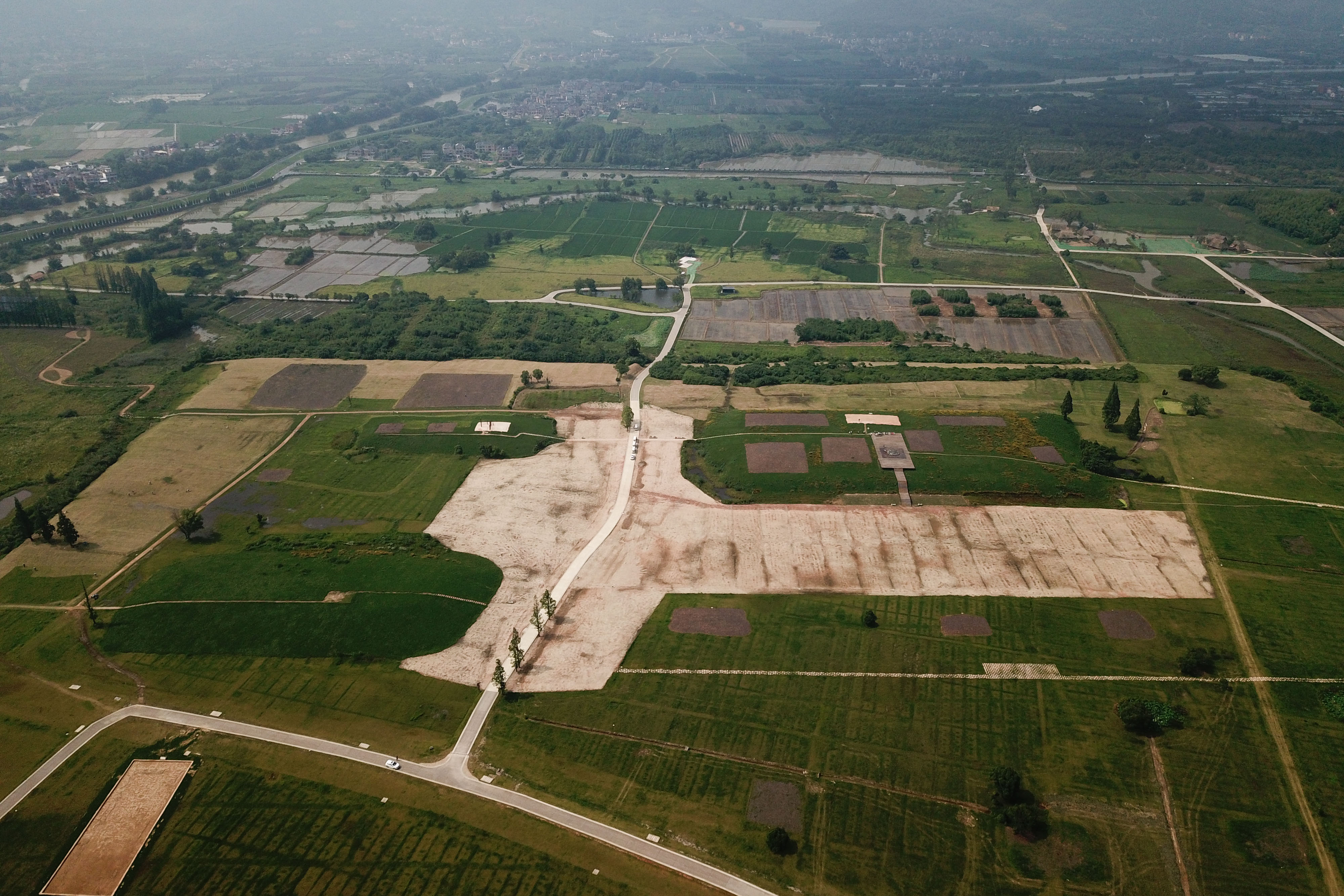 Aerial photo taken on June 23, 2019 shows a view of Liangzhu relic site in Hangzhou, east China's Zhejiang Province. (Xinhua/Huang Zongzhi)