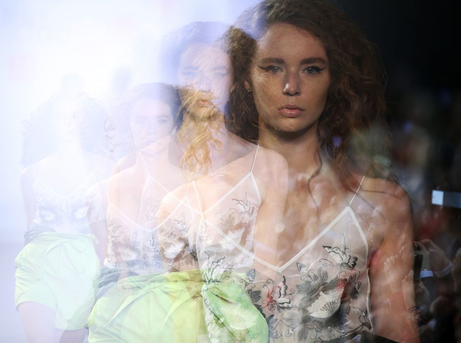 A model presents a creation from Taoray Taoray Spring/Summer 2020 collection during the New York Fashion Week, on Sept. 11, 2019. (Xinhua/Qin Lang)