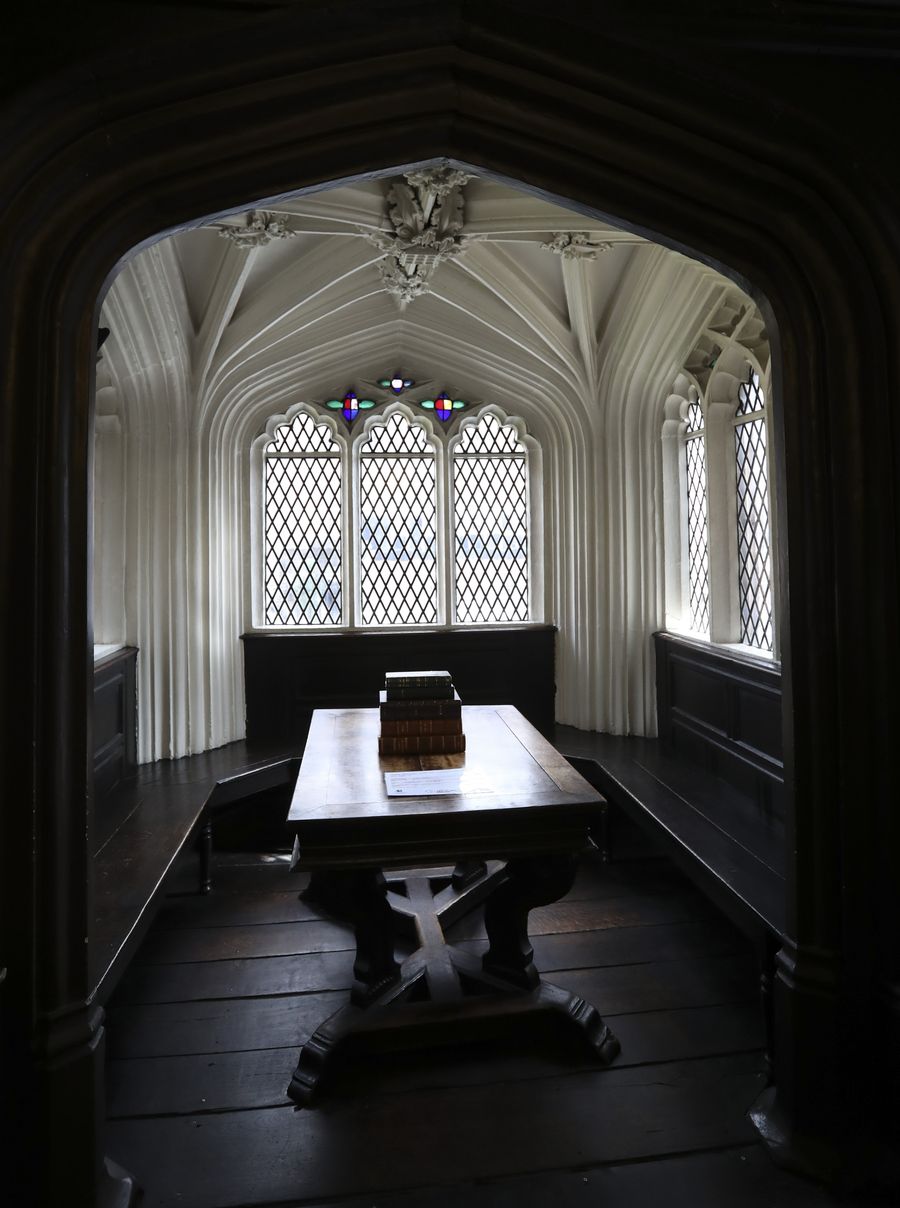 The oak desk they sat by in the window alcove of the reading room of the library remains intact today, along with some books that they had flipped through.