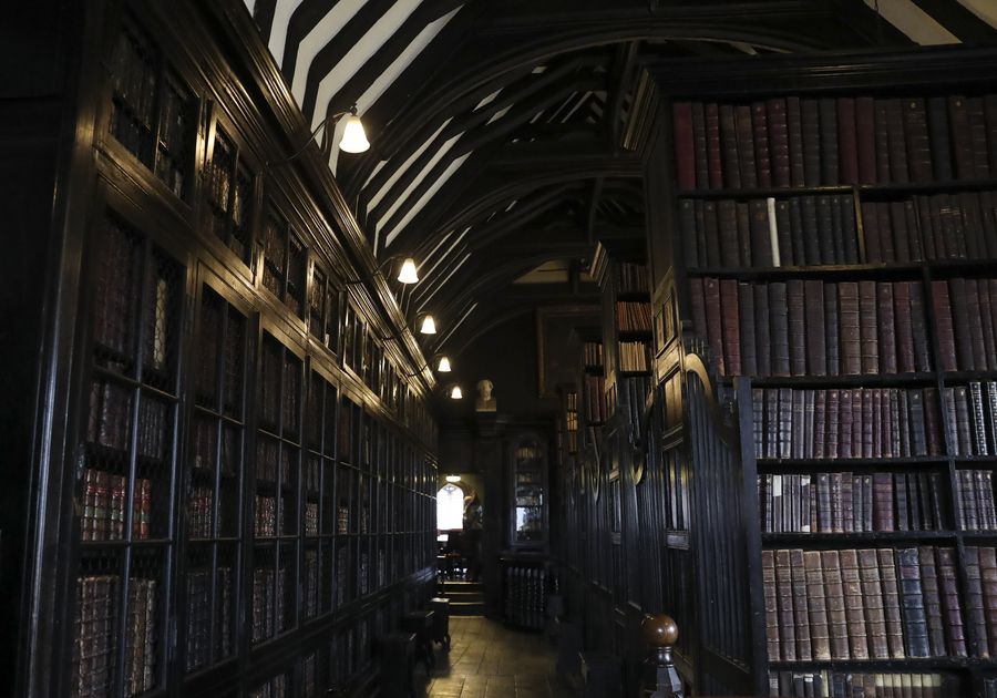 Photo taken on April 16, 2018 shows the interior of Chetham's Library in Manchester, Britain. (Xinhua/Han Yan)