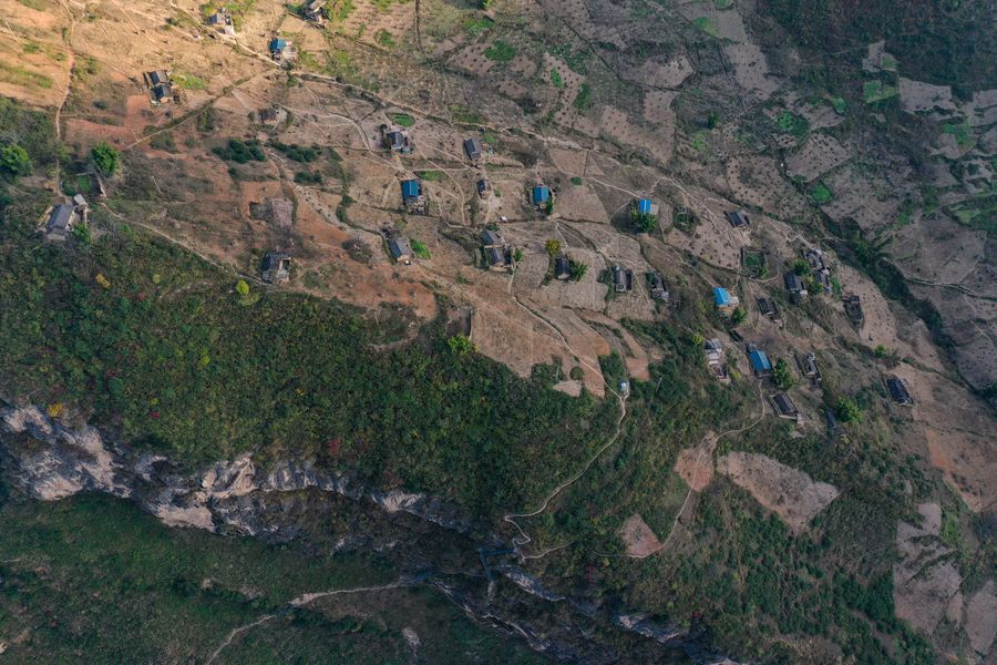 Aerial photo taken on Nov. 23, 2019 shows a part of Atulie'er Village, Zhaojue County. (Xinhua/Wang Xi)