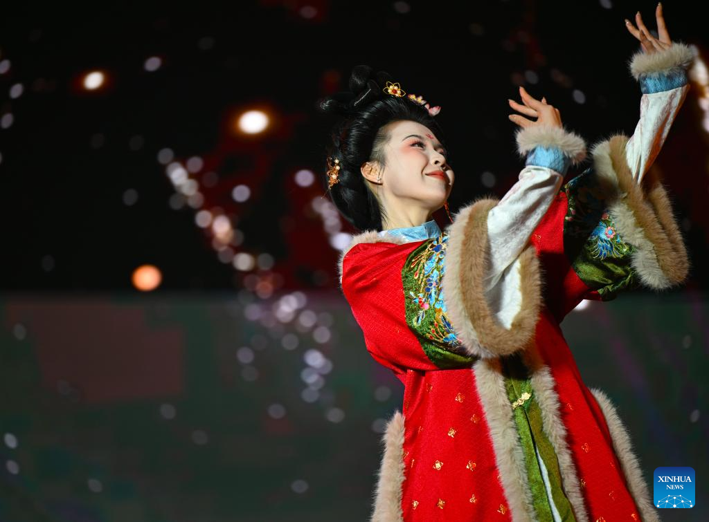 A model presents a creation at a fashion show held at Luoyi ancient city in Luoyang, central China's Henan Province, Oct. 29, 2025. (Xinhua/Hao Yuan)