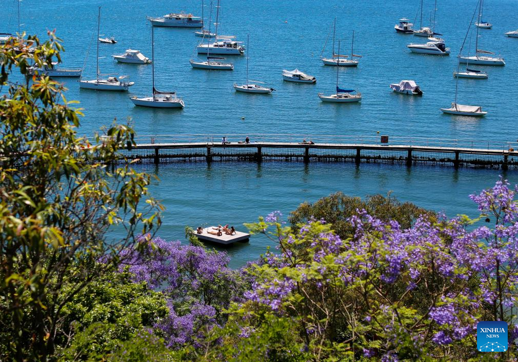 This photo taken on Nov. 5, 2025 shows the scenery of jacaranda at Murray Rose Pool in Sydney, Australia. (Xinhua/Ma Ping)