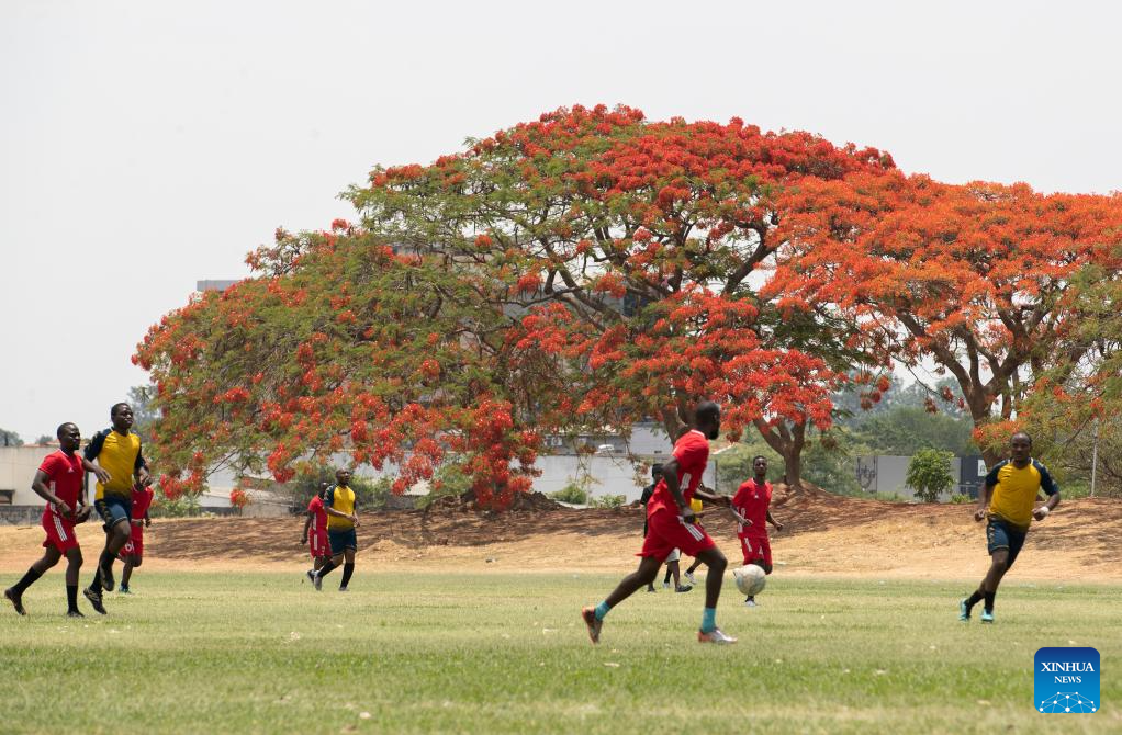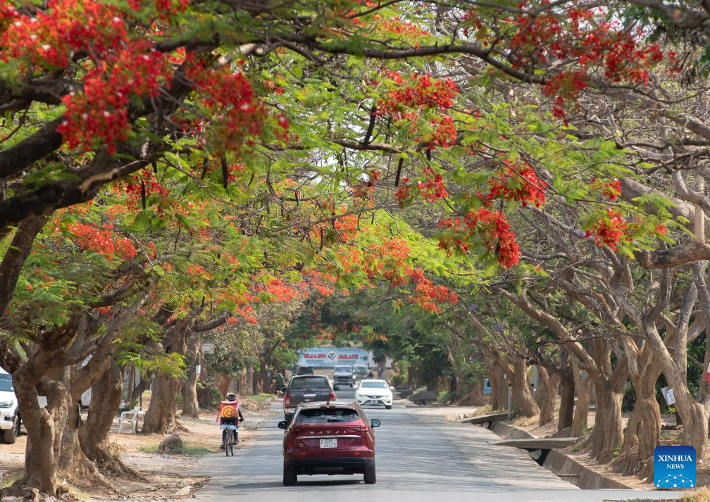 Blossoming flame trees are pictured in Lusaka, Zambia, Nov. 2, 2025. (Xinhua/Peng Lijun)