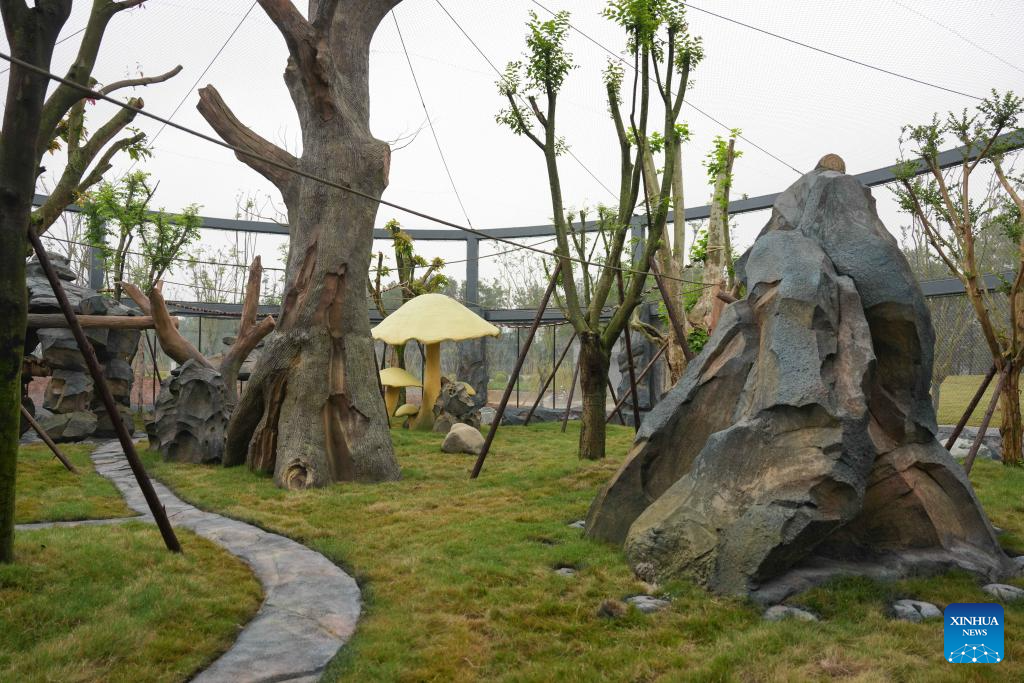 This photo taken on Nov. 4, 2025 shows a view of an outdoor venue for giant pandas at the Mianyang base of China Conservation and Research Center for the Giant Panda in Mianyang City, southwest China's Sichuan Province. The Mianyang base of China Conservation and Research Center for the Giant Panda, which took three years to build, was put into trial operation on Tuesday. Thirteen pandas from Wolong Shenshuping and Dujiangyan bases of China Conservation and Research Center for the Giant Panda moved into their new home at the newly opened Mianyang base on the day.