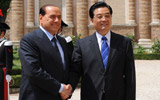 Visiting Chinese President Hu Jintao and Italian Prime Minister Silvio Berlusconi on Monday pledged their countries' efforts to further promote bilateral relations and cooperation in a number of areas.