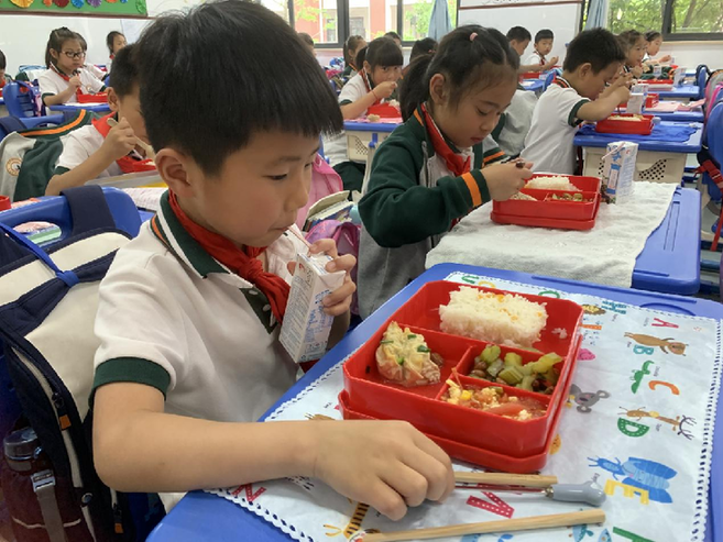 嘉興平湖市崇文小學學生營養(yǎng)午餐中均配有學生奶