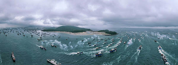 8月16日12时,为期三个半月的中国南海伏季休渔期正式结束。随着“开渔令”下达,数千艘渔船驶出闸坡渔港,奔赴生产海域开始捕捞作业。尽管天气不佳,渔民们的热情依旧高涨。在鞭炮声中,汽笛齐鸣,船只拔锚起航,向着“开渔第一网”丰收的目标进发。