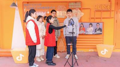 游客在河南省驻马店市西平县老王坡产业融合发展示范区的百亩油葵花海游玩。