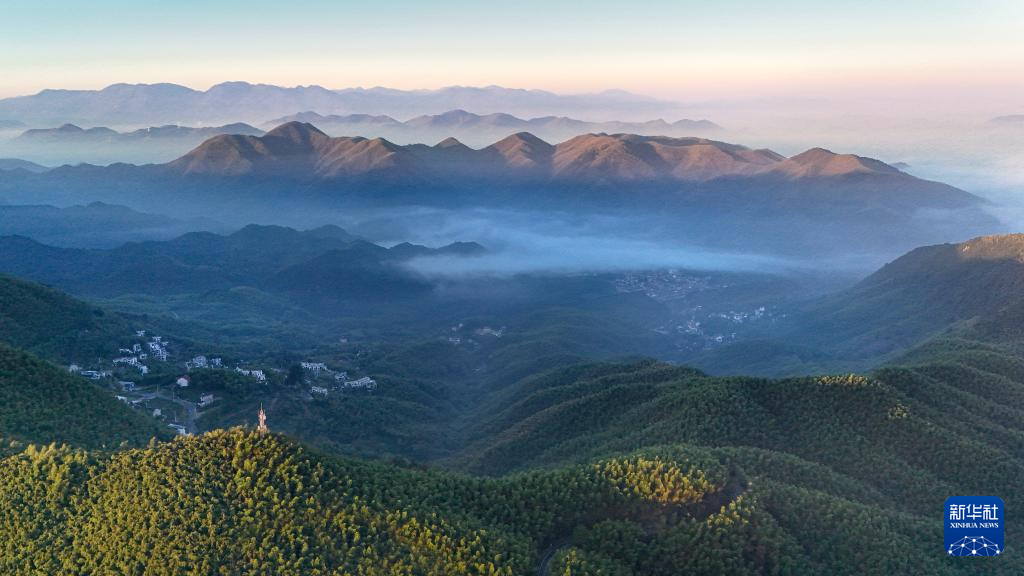 10月11日,在浙江省湖州市安吉县昌硕街道,绵延的竹海、错落有致的民宿在秋日暖阳下相互映衬。