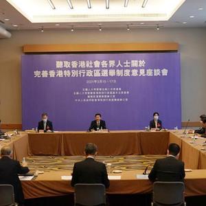2月28日至3月1日,中央有關部門在深圳市召開座談會,廣泛、充分聽取香港社會各界代表人士對完善“愛國者治港”有關制度的意見。全國兩會期間,相關部門又以多種方式,逐一聽取了港區全國人大代表、政協委員的意見。
