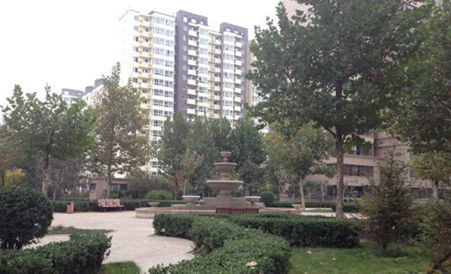 小區內的花園整體呈歐式風格,噴泉、長椅等設施完好。臨近中午,有不少老年人帶著孩子曬太陽。據他們介紹,該小區收房時未發生漏水等現象,小區電梯也很少有故障,收房的時候挺滿意的。在居住的一年多內,他們對小區的物業管理基本滿意。