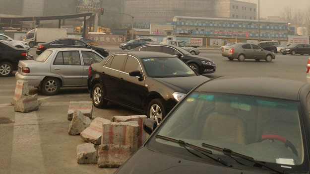 出了售樓處向右直走,便是歡樂谷所在地。和前去咨詢購房一樣“稀少”,上午十一點左右,歡樂谷幾乎沒有游客出入。隨后記者在金蟬西路和金蟬北路交叉口處注意到,大大小小的黑車滿大街停著,黑車司機扎堆玩撲克牌打發時間。
