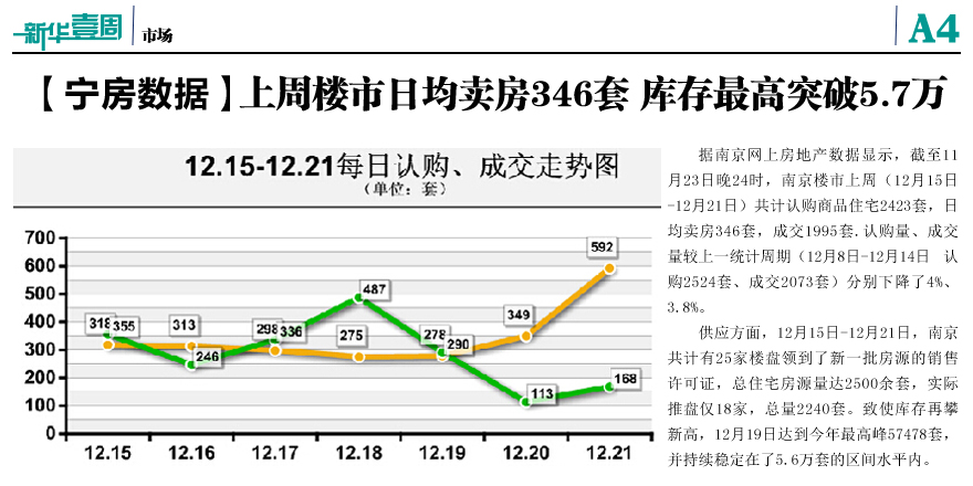 寧房數(shù)據(jù):上周南京日均賣房346套