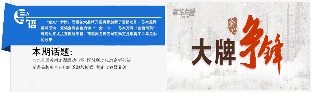 “金九”伊始,無(wú)錫各大品牌開(kāi)發(fā)商都加緊了營(yíng)銷(xiāo)動(dòng)作,蘇南龍湖區(qū)域聯(lián)動(dòng)、無(wú)錫金科多盤(pán)啟動(dòng)“一會(huì)一節(jié)”、蘇南萬(wàn)科“叁拾而聚”等活動(dòng)正式拉開(kāi)激戰(zhàn)序幕,而蘇南龍湖區(qū)域聯(lián)動(dòng)更是取得了立竿見(jiàn)影的效果。