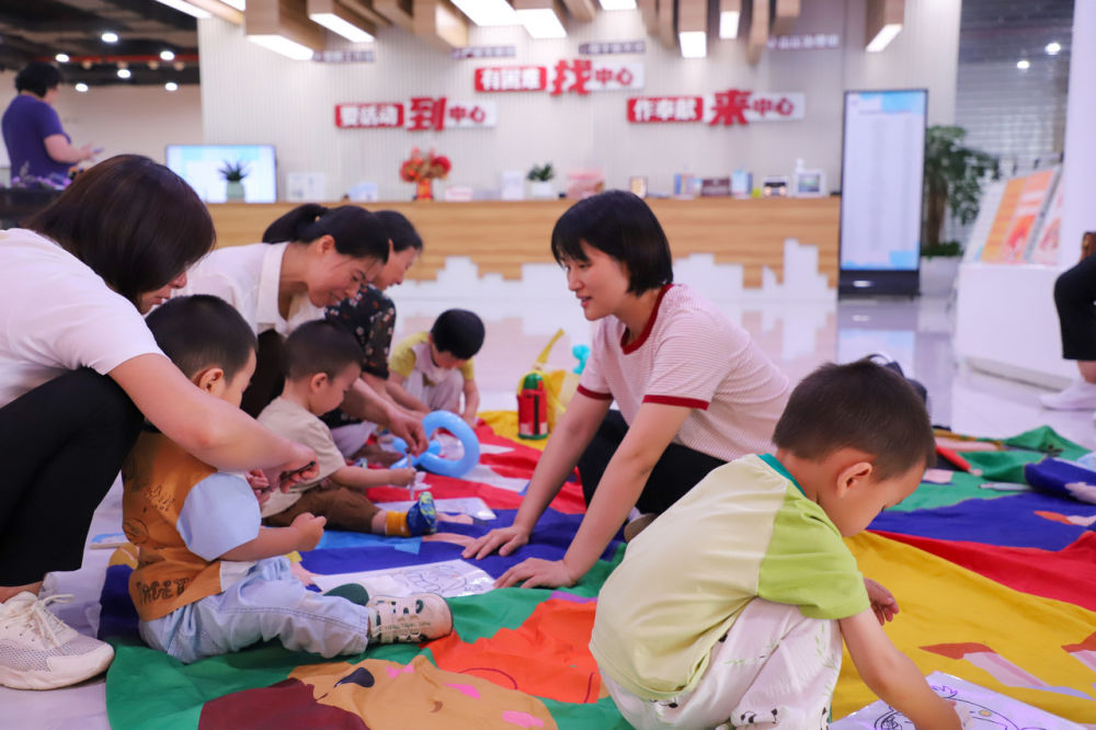 新天地商务社区组织50组企业双职工家庭参加“欢乐亲子碰碰车”托幼体验活动。