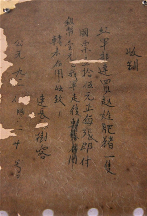 ????70多年過去,木板上的文字依稀可辨:“我們在這塊田內割了青稞一千斤,我們自己吃了。這塊木板可以作為我們購買你們這些青稞的憑證,請你們歸來以后,拿住這塊木板,向任何紅軍部隊或蘇維埃政府,都可兌取與我們吃你們青稞價值相等的銀子、茶葉或你們所需的物品。在你們還未曾兌得這些東西之前,需要好好保存這塊木牌子”,落款是前敵總政治部。