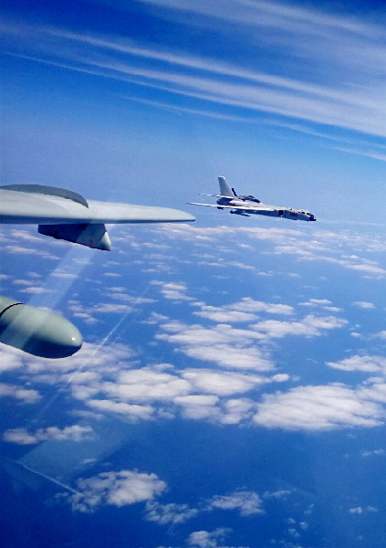 ??? 4月19日,中國空軍轟-6K等多型戰機執行“繞島巡航”任務。中國空軍4月21日向海內外發布多語種宣傳片《戰神繞島新航跡》。空軍戰神轟-6K等戰機近日連續3天“繞島巡航”的震撼畫面,在宣傳片中集中展現,彰顯了空軍飛行員維護國家主權和領土完整的意志能力。新華社發(翟培松 攝)