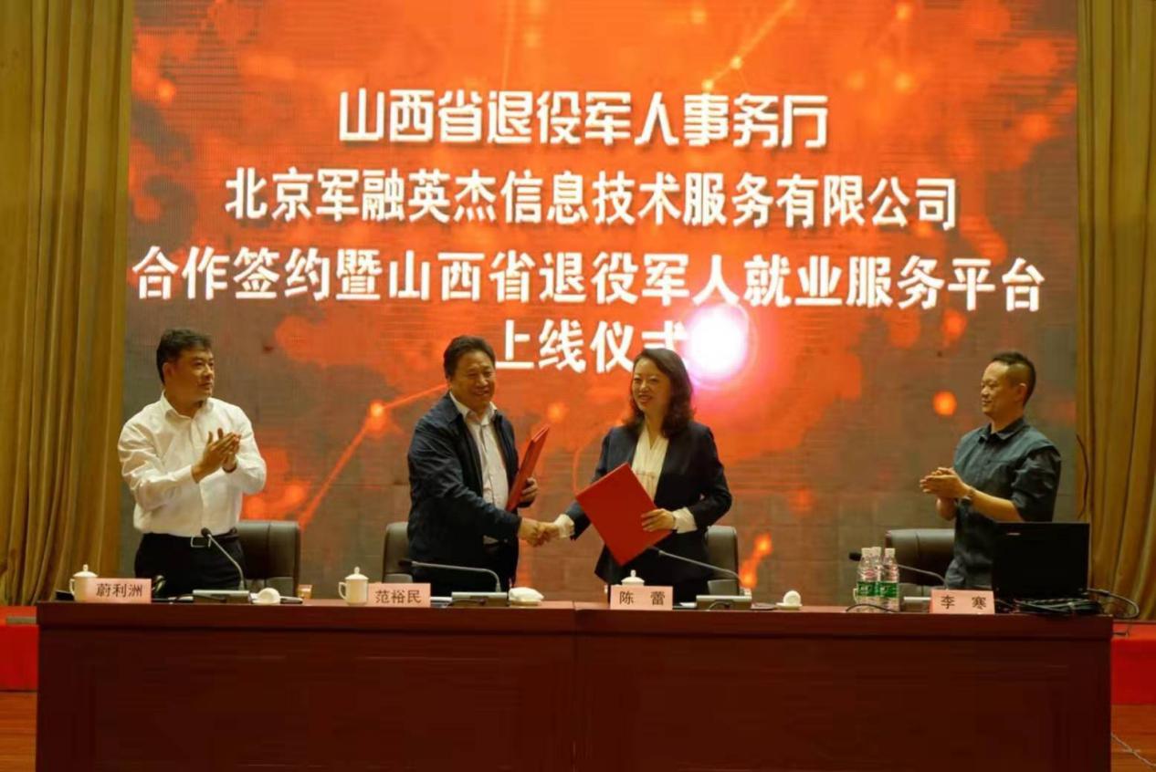 ????山西省退役軍人事務(wù)廳與北京軍融英杰信息技術(shù)服務(wù)有限公司25日在忻州簽署合作協(xié)議,正式推出山西省退役軍人就業(yè)創(chuàng)業(yè)服務(wù)平臺(tái)。這是山西省積極探索借助社會(huì)力量為退役軍人就業(yè)創(chuàng)業(yè)服務(wù)的又一舉措。