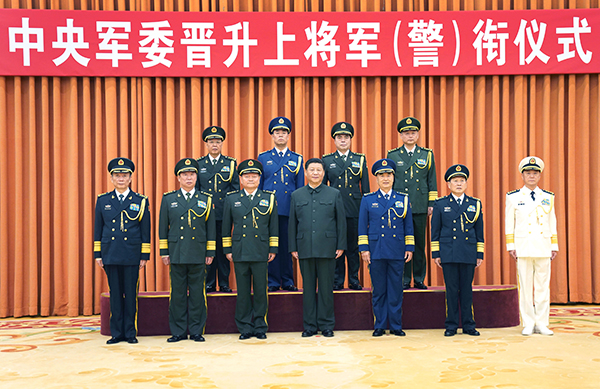 ????中央軍委舉行晉升上將軍銜警銜儀式 習(xí)近平頒發(fā)命令狀并向晉銜的軍官警官表示祝賀